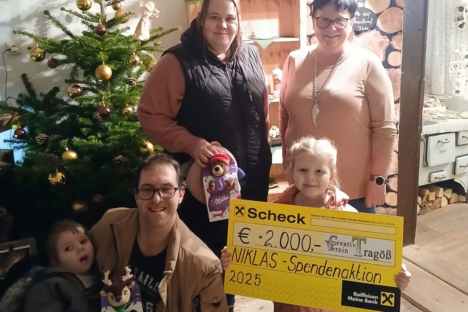 Mit einem Spendenscheck in Höhe von 2000 Euro überraschte die Obfrau des Creativ-Vereins Tragöß Christa Mayerhofer zur vergangenen Weihnachtszeit die Familie des kleinen Niklas, der auf kostenintensive Pflege angewiesen ist. Das Geld stammt aus den Erlösen und Spenden, die beim alljährlich vom Verein durchgeführten Advent- und Kunsthandwerksmarkt lukriert werden konnten.