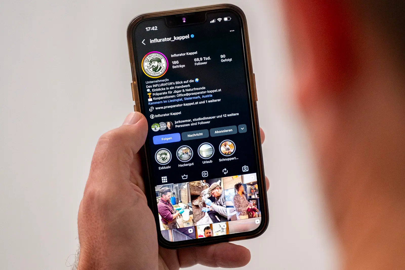 Dass traditionelles Handwerk und Social Media sehr gut Hand in Hand gehen können, stellt der Präparator Erwin Kappel aus Kammern unter Beweis. Als „Influrator“ kennt man ihn auf der Plattform Instagram, auf der er aktuell rund 68.000 Follower hat. Seit zwei Jahren flimmert der 39-Jährige über die Handybildschirme seiner Fangemeinde, mit Einblicken in die Werkstatt, aber auch ins Privatleben, und immer wieder auch mit kernigen Sprüchen.