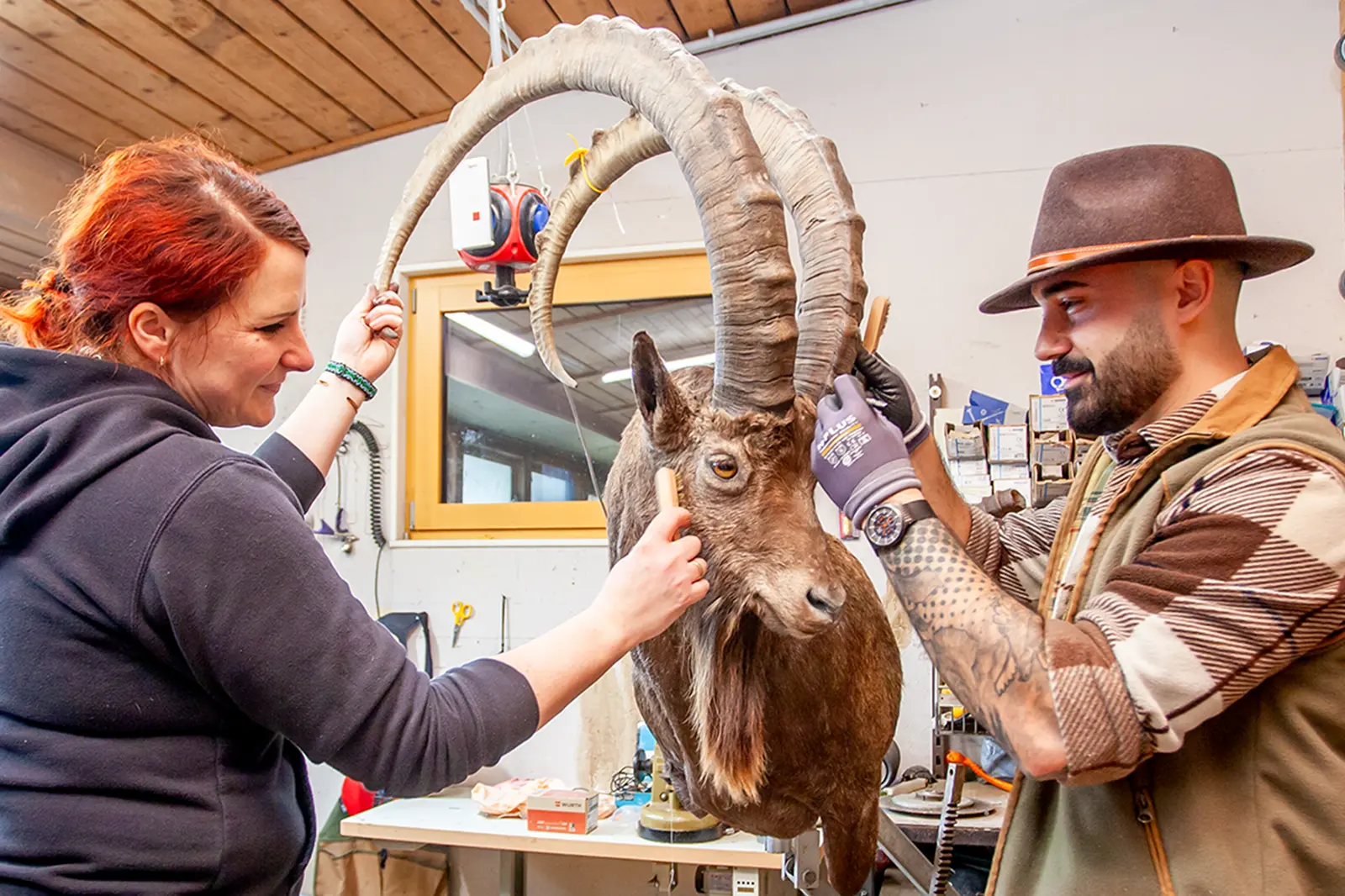 Den Betrieb in Kammern schupft Erwin Kappel gemeinsam mit Ehefrau Evelyn. Als Helfer ist auch sein guter Freund Miroslav Makic eifrig mit von der Partie. „Ohne den Micky im Hintergrund würd’s nicht laufen“, sagt Kappel, „und er macht das tatsächlich als Hobby, für Gotteslohn, weil er sich fürs Wild und fürs Handwerk interessiert.“ Apropos, wer selbst hautnah Einblick gewinnen will, kann beim „Influrator“ einen Besuchstag in der Werkstatt buchen.