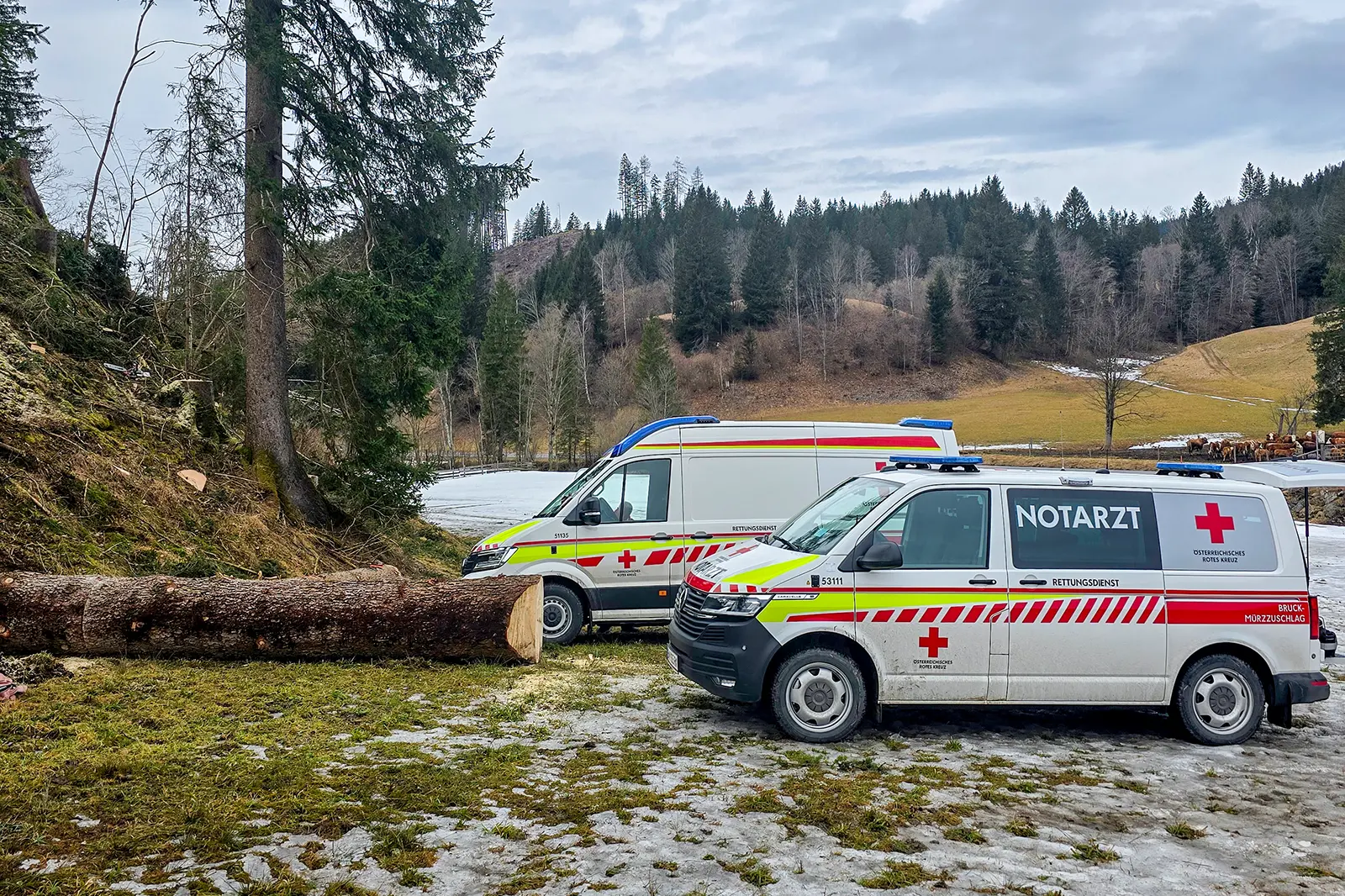 Am Nachmittag des 12. Februars war ein 43-jähriger Forstarbeiter aus dem Bezirk Lilienfeld (NÖ) mit Schlägerungsarbeiten nahe der Bundesstraße B21 in Mariazell-Halltal beschäftigt. Aus bisher unbekannter Ursache geriet ein mehrere Meter langer Stamm ins Rollen klemmte den Arbeiter im Bereich des linken Beines ein. Arbeitskollegen griffen rasch ein und befreiten den Verunfallten mit Hilfe des Krans eines Forstgerätes. Der Arbeiter erlitt bei dem Unfall Verletzungen unbestimmten Grades am linken Unterschenkel sowie am linken Knie und wurde vom Notarztteam des Roten Kreuzes Mariazellerland erstversorgt. In stabilem Zustand erfolgte im Anschluss der Transport mit einem Rettungswagen in das Landesklinikum Lilienfeld. Im Einsatz standen das Rote Kreuz Mariazellerland mit einem Rettungswagen und dem Notarztfahrzeug sowie die Polizei Mariazell.