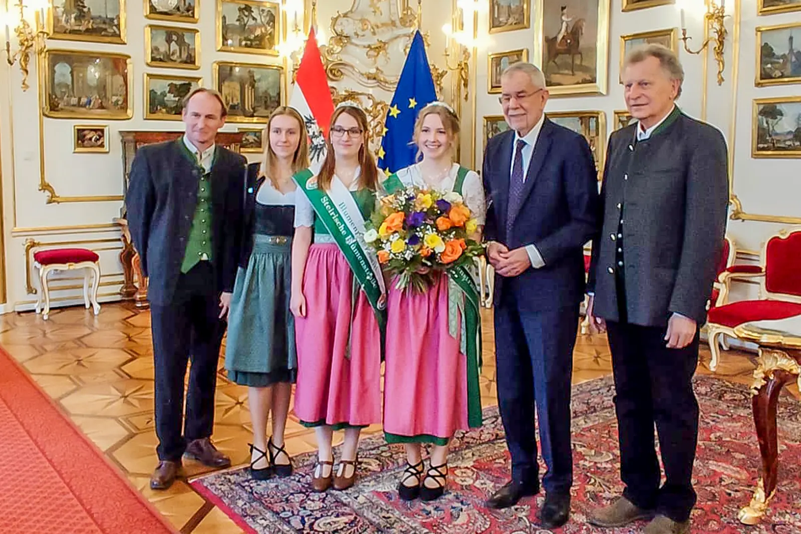 Die steirische Blumenstraße überbrachte Valentinsgrüße an Bundespräsident Alexander Van der Bellen und Landeshauptmann Mario Kunasek.