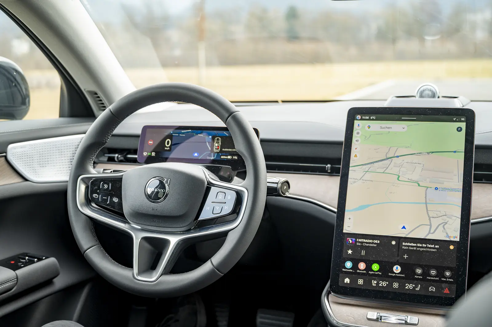 Hat man einmal im ES90 Platz genommen, spürt man sofort, dass es sich hier um ein Auto mit Oberklasseniveau handelt. Wirklich alles mutet sehr hochwertig an. Hinterm Steuer lenkt nicht viel ab, der Blick kann sich aufs Wesentliche konzentrieren. Das aufgeräumte Cockpit bedeutet, dass viele Funktionen über den großen Bildschirm gesteuert werden. Dessen Bedienung verlangt vom Fahrer aber auch, sich schon im Vorfeld ausführlich damit zu beschäftigen. Nicht alles ist so intuitiv, wie man es sich wünschen würde, aber das kennt man auch schon vom kleineren EX30. So ist auch im ES90 etwa das Handschuhfach nur über einen Tastendruck am Display zu öffnen, und auch die Verstellung der Außenspiegel kann etwas fordernd sein.