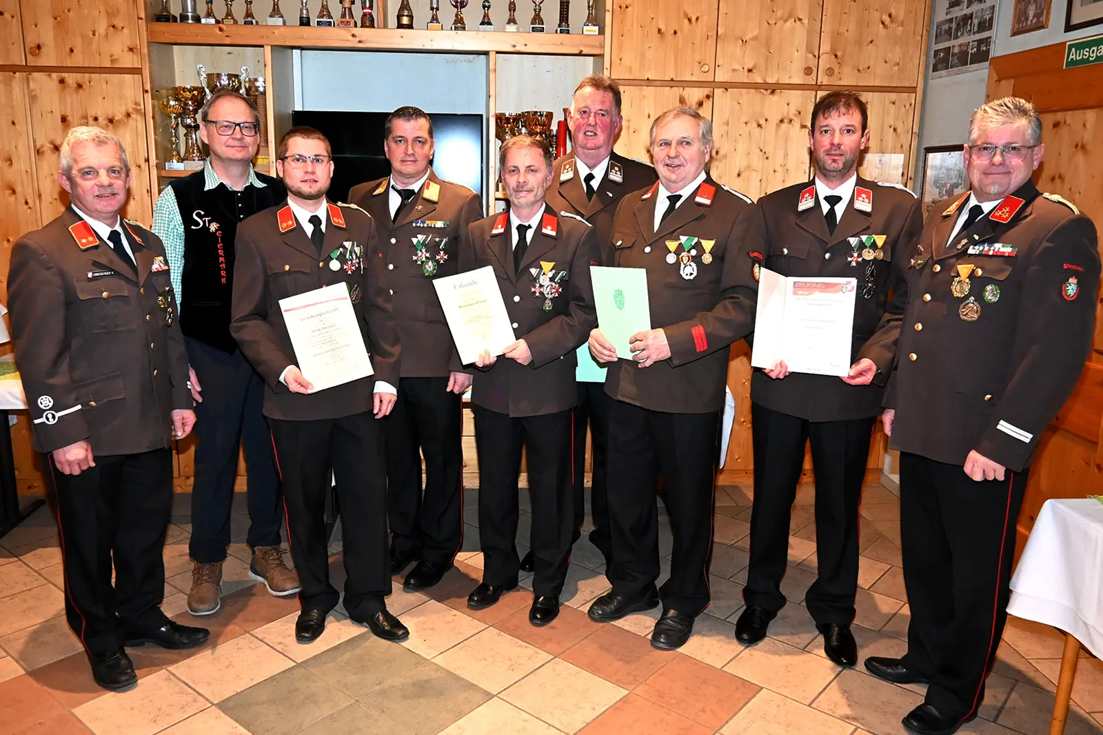 Bei der Wehrversammlung der Freiwilligen Feuerwehr Gimplach in Trofaiach blickte Kommandant Manfred Winkler auf das vergangene Jahr zurück. Dabei berichtete er über zwölf Einsätze und zahlreiche weitere Tätigkeiten, für die insgesamt 4745 ehrenamtliche Stunden geleistet wurden. Im Zuge der Veranstaltung wurde außerdem Manuel Zirbisegger mit dem Verdienstzeichen in Silber des Bereichsverbandes Leoben gewürdigt. Anton Thoma, Friedrich Raiber, Klausjürgen Eisner und Manfred Winkler wurde für ihre langjährige Tätigkeit im Feuerwehrwesen geehrt. Gratulationen kamen unter anderen von Abschnittskommandant Gregor Reissner und Finanzstadtrat Johannes Greilberger sowie mehreren Vertretern befreundeter Wehren.