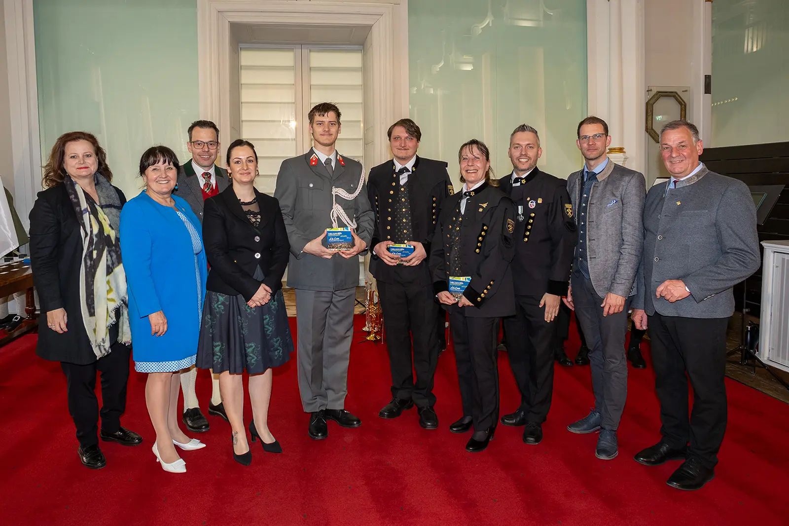 Bei der jüngsten Verleihung der goldenen Leistungsabzeichen an verdiente steirische BlasmusikantInnen wurden auch mehrere VertreterInnen unserer Region geehrt. Valentina Königshofer vom Musikverein Birkfeld, Nina Pötz vom Musikverein Miesenbach, Niklas Deutschmann-Klaus und Nicholas Leitner vom Musikverein Heimatklang St. Marein, Thomas und Wolfgang Eckart vom Musikverein Pernegg, Sophie Hansmann von der Stadtkapelle Kapfenberg, Hannes Korndon vom Musikverein Graßnitz in Aflenz, Jakob Hackl und Petra Koller-Maßer von der Werkskapelle Voestalpine Tubulars Kindberg sowie Dominik Zettel von der Musikkapelle Voestalpine Roseggerheimat Krieglach durften die Auszeichnung entgegennehmen. Darüber hinaus durften sich sieben AbsolventInnen des Studiengangs „Blasorchesterleitung“ über das Kapellmeisterabzeichen freuen, darunter auch Felix Remich von der Stadtkapelle Trofaiach.