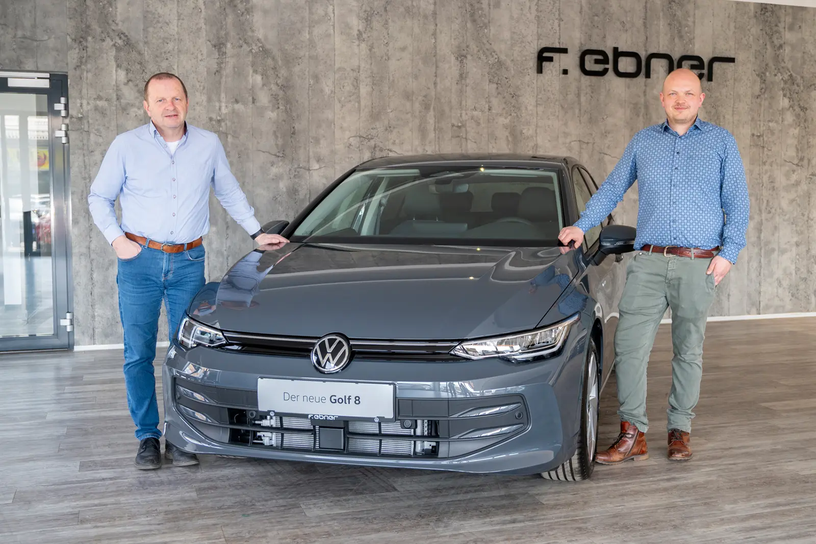 Franz Brunner (li.) und Matthias Wernbacher vom Autohaus F. Ebner in Bruck präsentieren den neuen VW Golf Rabbit, der auch als Plug-in-Hybrid-Variante zu haben ist. Foto: PA