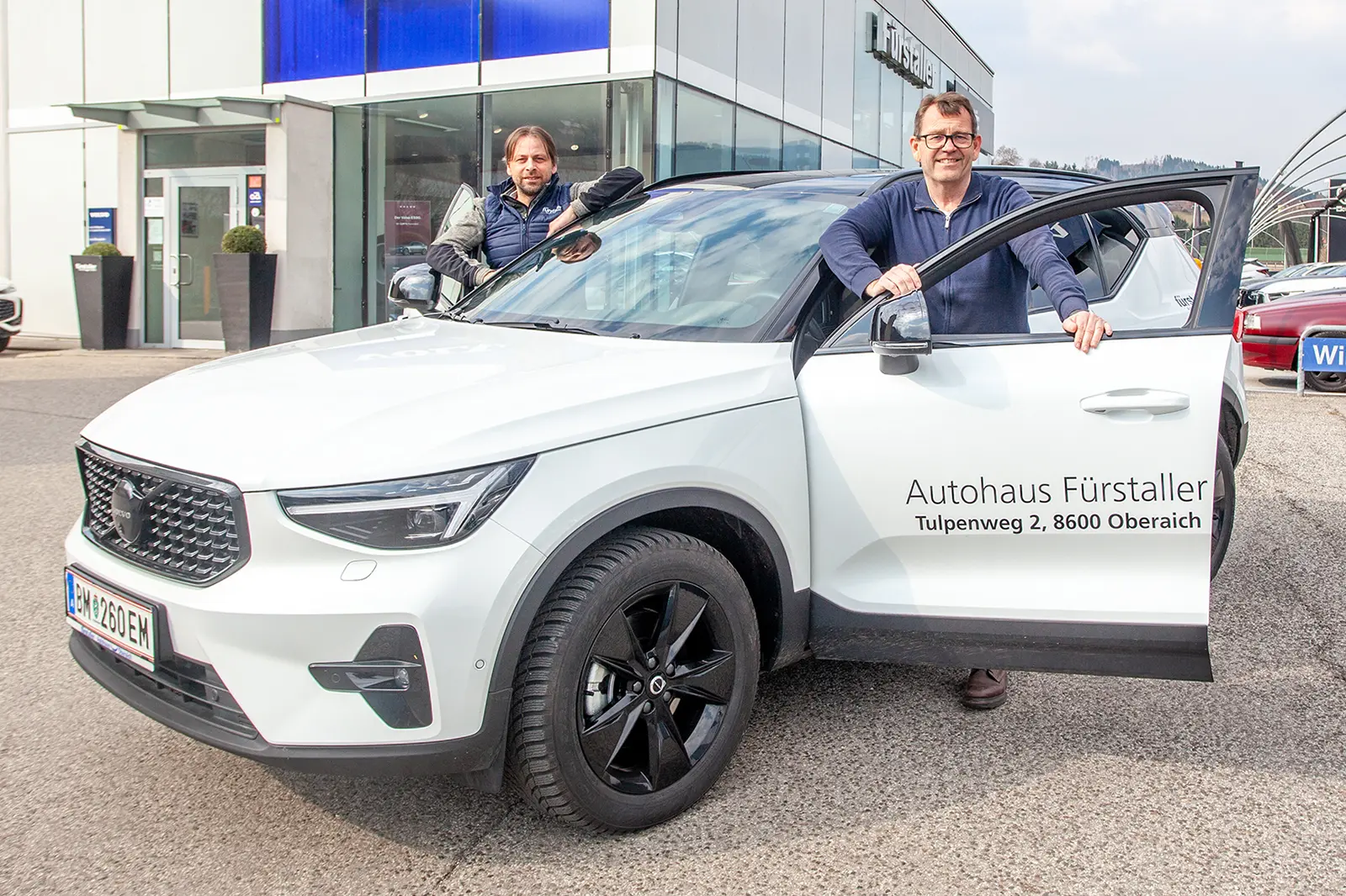 Michael Auer (li.) und Hans-Jörg Fürstaller vom Autohaus Fürstaller in Bruck mit dem neuen Volvo XC40. Foto: KD