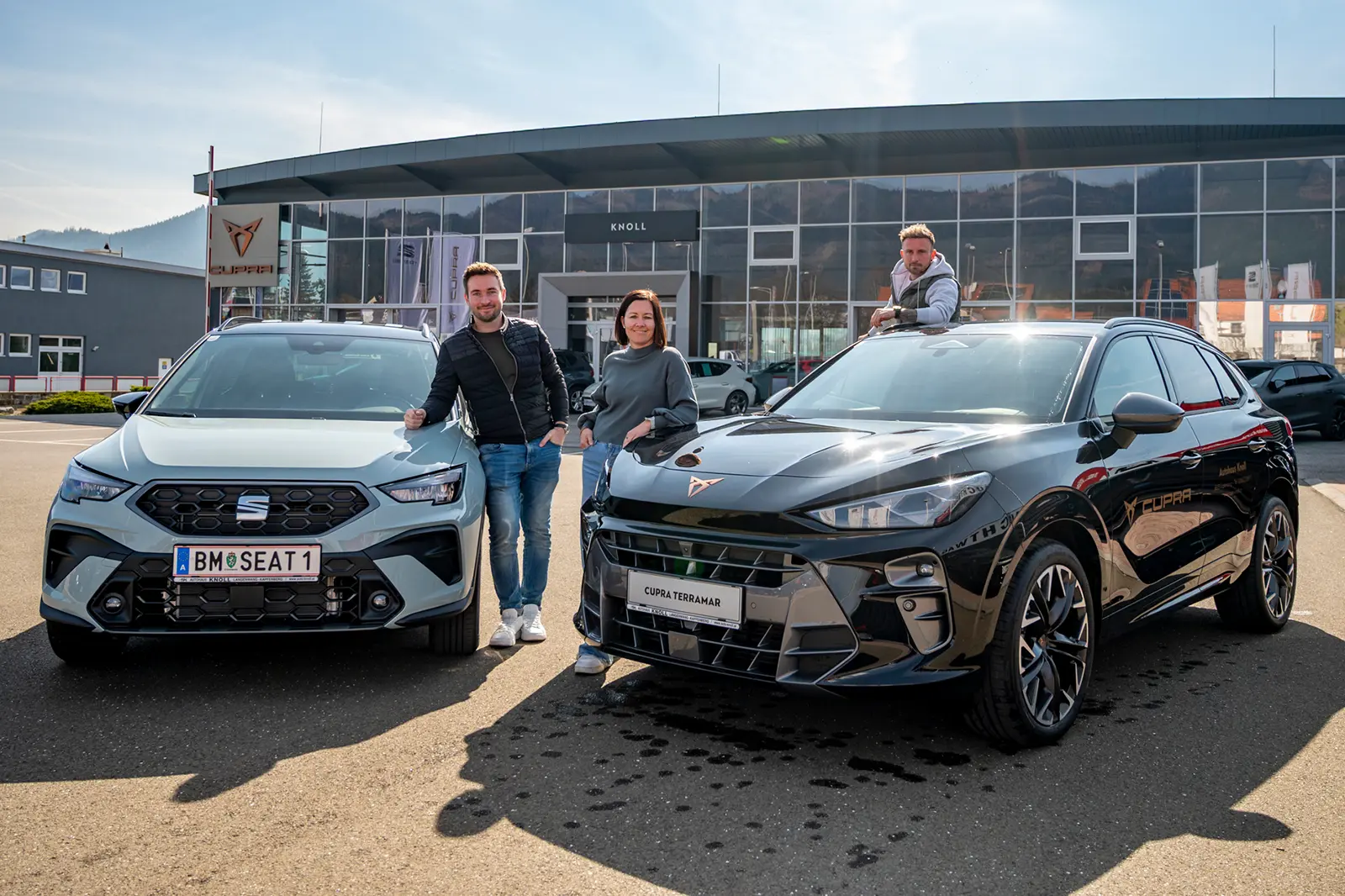 Das Team des Autohauses Knoll in Kapfenberg mit den beiden Modellen Seat Arona (li.) und Cupra Terramar. Foto: PA