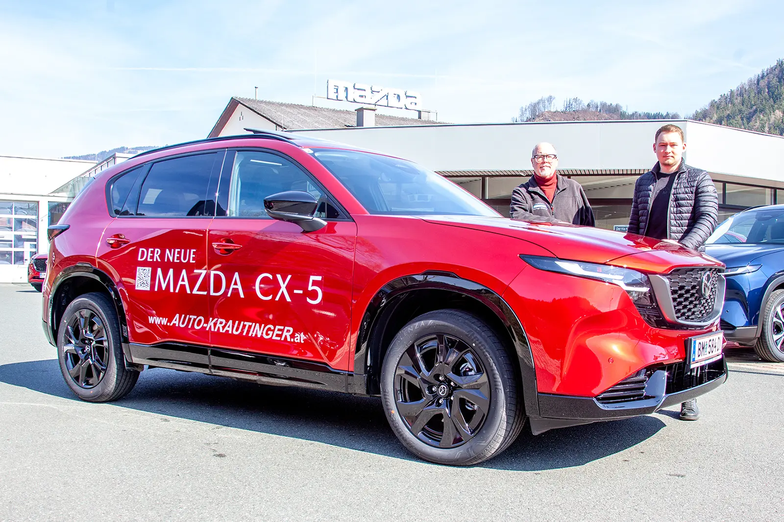 Martin Wallner (li.) und Matthias Kersch vom Autohaus Krautinger in Pernegg mit dem neuen Mazda CX-5. Foto: KD