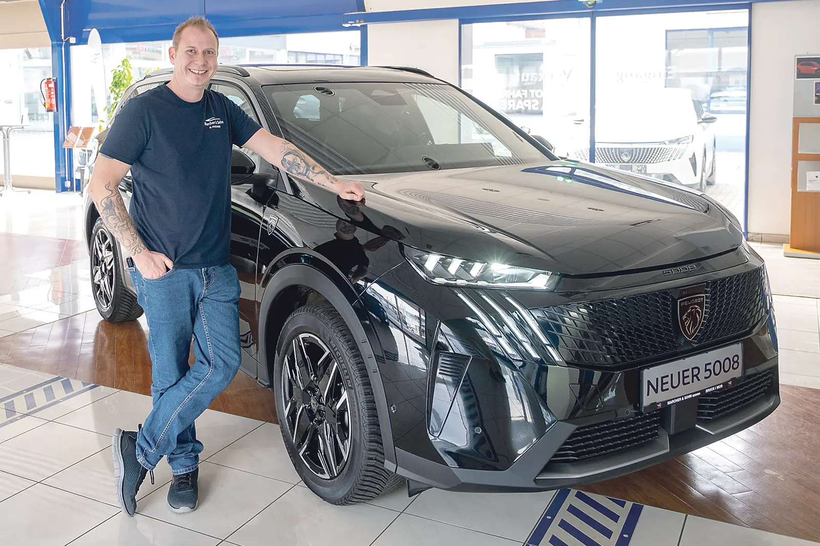 Markus Fasching vom Autohaus Macher & Sohn in Bruck mit dem neuen Peugeot 5008. Foto: PA