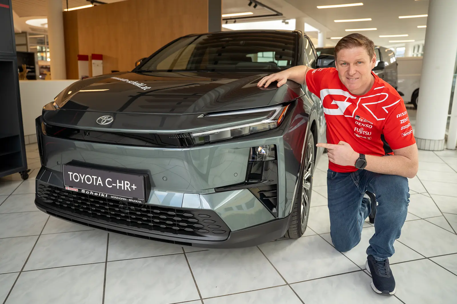 Christoph Scheikl vom Autohaus Scheikl in Bruck präsentiert den neuen Toyota C-HR+. Foto: MaW