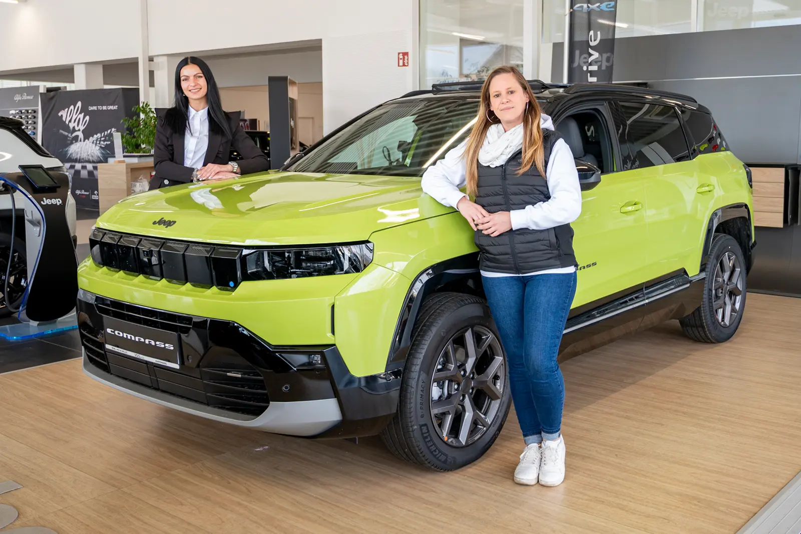 Dona Horvat (li.) und Nicole Pichler vom Autohaus Vogl+Co in Kapfenberg mit dem neuen Jeep Compass. Foto: PA