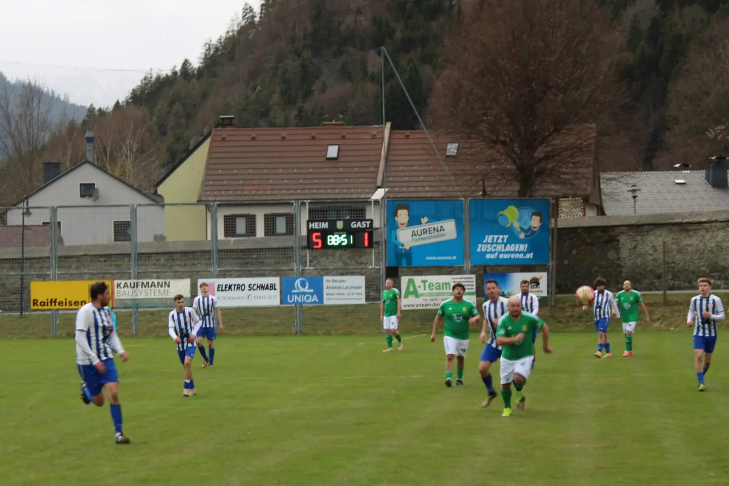 Am Karsamstag hatte der ATuS Langenwang den SC Gußwerk zu Gast. Nach nur sieben Minuten hätten die Gäste in Führung gehen können, doch ein Schuss von Stefan Prumetz klatschte nur an die Latte. Mit Fortdauer des Spieles kamen die Heimischen besser in das Spiel, aber nach einer halben Stunde war es wieder Prumetz, der knapp scheiterte. Kurz vor der Pause war es Langenwang-Stürmer Ernst Maierhofer, der ein Zuspiel von Jakob Zächling knapp verfehlte. Nach dem Seitenwechsel verschob sich die Statistik; Langenwang übernahm mehr Kontrolle, suchte über längere Ballbesitzphasen geduldig die Lücken und erhöhte die Präsenz im letzten Drittel. In der 62. Minute war es dann soweit, Langenwang-Neuzugang Aleksandar Shalev erzielte den einzigen Treffer in diesem Spiel zum 1:0-Sieg. „Es war ein hartes Stück Arbeit, aber die drei Punkte bleiben damit in Langenwang“, sagte Langenwang-Trainer Zoran Racic. Am Samstag sind die Langenwanger beim TuS Krieglach II zu Gast, der SC Gußwerk empfängt ebenfalls am Samstag den SC Parschlug (beide 16 Uhr). „Ich erwarte mir einen richtigen Fight gegen Parschlug, wir spielen endlich wieder zuhause und werden alles geben, damit die drei Punkte in Gußwerk bleiben“, sagte Manuel Schmidberger (Sektionsleiter Gußwerk).