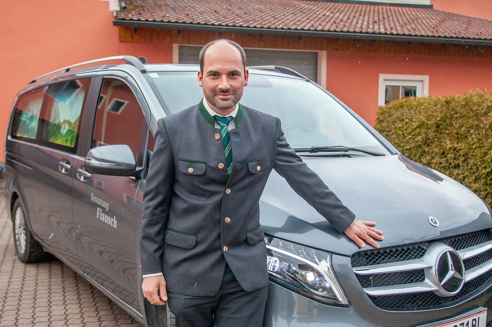 Michael Fiausch führt den von seinem Großvater Josef im Jahr 1961 gegründeten Familienbetrieb in Kalwang in dritter Generation. Die Eltern Biserka und Gerhard Fiausch leiteten das Unternehmen bis 2024. „Unser oberstes Gebot ist, dass jeder Sterbefall unsere ganze Sorgfalt verdient, jede Familie unsere volle Aufmerksamkeit und unser Einfühlungsvermögen“, so Michael Fiausch. Das Abschiednehmen sei eine Ausnahmesituation, auf die man sich nur begrenzt vorbereiten könne, sagt er: „Wenn man einen geliebten Menschen verliert, braucht man eine verlässliche Bestattung an seiner Seite, welche die Hinterbliebenen in der schweren Zeit begleitet und die Verstorbenen mit Würde und Respekt behandelt. Wir unterstützen und versuchen, Trauerdruck abzunehmen, kümmern uns je nach Wunsch um alle Formalitäten, die Organisation der Trauerfeier, Überführungen, Grabreden und musikalische Umrahmung.“
