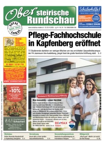 www.rundschau-medien.at | 22./23.10.2025 – Jg.14 | Nr. 20 | Tel. 03862/8989-250 Österreichische Post AG | P.b.b. | Verlagsort 8600 Bruck an der Mur | RM12A039411K | Auflage: 90.500 Stk. | AUSGABE BRUCK / MUR Wohnbau Dritter Riverside-Bauabschnitt in Kapfenberg übergeben. S. 4 Vernetzung Bruck lädt zu einer großen Gesundheitskonferenz. S. 6 Veranstaltungszentrum Feierliche Grundsteinlegung im Frohnleitener Rintpark. S. 7 Wildgericht „Afoch guat“: Martin Luh verrät ein Reh-Rezept. S. 26 72 Studierende starteten vor wenigen Wochen am neu errichteten Gesundheitscampus der FH Joanneum ihre Ausbildung, jüngst fand die große feierliche Eröffnung statt. S. 2 Pflege-Fachhochschule in Kapfenberg eröffnet Ihre Immobilie – unser Herzblut Remax Smart mit Büros in Kapfenberg und Mürzzuschlag setzt neue Maßstäbe im Immobilienverkauf. Moderne Technologie trifft hier auf persönliche Betreuung – und das Vertrauen der Kunden steht immer im Mittelpunkt. Mit professionellen Fotos, Videos und virtuellen Rundgängen präsentiert Remax Smart jede Immobilie im besten Licht. Dank gezielter Online-Werbung und Marktanalyse finden die erfahrenen Makler rasch den passenden Käufer – transparent, effizient und mit Herz. Nähere Info gibt es bei Geschäftsführer Günter Harrer unter Tel. 0660/7569730. ANZEIGE / Foto: KK Kostenlose Marktwerteinschätzung STOP! Wenn Sie Ihren Gold- und Silberschmuck, Diamant-, und Edelsteinschmuck, Ihre Gold- und Silbermünzen, Armband- und Taschenuhren, Briefmarken, Orden und Auszeichnungen, Urkunden, Fotoalben und Bücher vom 1. bzw. 2. WK, Bilder, Teppiche verkaufen möchten, fragen Sie zuerst unsere Sachverständigen. Schätzungen sind in unseren Geschäften in Bruck (Hauptplatz, im Haus Glasbau Gruber) und Leoben (beim Schwammerlturm) kostenlos – Hausbesuche nach Anruf. Wir erstellen auch Gutachten für Schmuck und Antiquitäten für Haushaltsversicherungen und Testamente. 0664 / 33 82 716 Goldund Silber- ankauf! SOFORTANKAUF GOLDDUKATEN, PHILHARMONIKER, BABENBERGER, GOLDBARREN. AUCH JEDE MÜNZSAMMLUNG! SILBER, KUPFER UND NICKEL. ANKAUF VON 10-, 25-, 50-, 100- und 500-SCHILLING-MÜNZEN! (auch beschädigte Münzen) ÖFFNUNGSZEITEN: Bruck: 9-15 Uhr | Leoben: 8-16 Uhr WWW.JAHRBACHER.AT Montag - Freitag von 8-18 Uhr Samstags von 8-17 Uhr Landskronstraße 4 8600 Bruck an der Mur AKTION -10% auf alle lagernden AllerheiligenGestecke in der Gartenwelt Jetzt anmelden: 03862 30608 www.schuelerhilfe.at/Nachhilfe/bruck-mur HERBST- INTENSIVKURS 27.-31. Oktober 1 Jahr Schülerhilfe Bruck/Mur