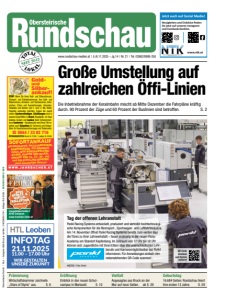 www.rundschau-medien.at | 5./6.11.2025 – Jg.14 | Nr. 21 | Tel. 03862/8989-250 Österreichische Post AG | P.b.b. | Verlagsort 8600 Bruck an der Mur | RM12A039411K | Auflage: 90.500 Stk. | AUSGABE BRUCK / MUR Prämierung Wirtschaftskammer zeichnete „Stars of Styria“ aus. S. 6 Eröffnung Einblick in den neuen Schulcampus in Mariazell. S. 10 Vielfalt Angesagtes aus Bruck an der Mur auf neun Seiten. ab S. 39 Geburtstag 16.684 Seiten: Rundschau feiert ihre ersten 13 Jahre. S. 59 Die Inbetriebnahme der Koralmbahn mischt ab Mitte Dezember die Fahrpläne kräftig durch. 90 Prozent der Züge und 60 Prozent der Buslinien sind betroffen. S. 2 Große Umstellung auf zahlreichen Öffi-Linien Tag der offenen Lehranstalt Pankl Racing Systems entwickelt, produziert und vertreibt hochtechnologische Komponenten für die Rennsport-, Sportwagen- und Luftfahrtindustrie. Am 14. November öffnet Pankl Racing Systems bereits zum vierten Mal die Türen zu ihrer Lehrwerkstatt – heuer erstmalig in der neuen Pankl Academy am Standort Kapfenberg. Im Zeitraum von 12 Uhr bis 18 Uhr können sich Jugendliche mit ihren Eltern über die unterschiedlichen Lehrberufe und Karrieremöglichkeiten bei Pankl informieren. Für Anmeldungen einfach den nebenstehenden QR-Code scannen! QR-Code scannen und Termin sichern! ANZEIGE / Foto: Pankl www.ntk.at Jetzt auch auf Social Media! Neuigkeiten und Einblicke finden Sie jetzt auf unseren Instagram- und Facebook-Kanälen. STOP! Wenn Sie Ihren Gold- und Silberschmuck, Diamant-, und Edelsteinschmuck, Ihre Gold- und Silbermünzen, Armband- und Taschenuhren, Briefmarken, Orden und Auszeichnungen, Urkunden, Fotoalben und Bücher vom 1. bzw. 2. WK, Bilder, Teppiche verkaufen möchten, fragen Sie zuerst unsere Sachverständigen. Schätzungen sind in unseren Geschäften in Bruck (Hauptplatz, im Haus Glasbau Gruber) und Leoben (beim Schwammerlturm) kostenlos – Hausbesuche nach Anruf. Wir erstellen auch Gutachten für Schmuck und Antiquitäten für Haushaltsversicherungen und Testamente. 0664 / 33 82 716 Goldund Silber- ankauf! SOFORTANKAUF GOLDDUKATEN, PHILHARMONIKER, BABENBERGER, GOLDBARREN. AUCH JEDE MÜNZSAMMLUNG! SILBER, KUPFER UND NICKEL. ANKAUF VON 10-, 25-, 50-, 100- und 500-SCHILLING-MÜNZEN! (auch beschädigte Münzen) ÖFFNUNGSZEITEN: Bruck: 9-15 Uhr | Leoben: 8-16 Uhr WWW.JAHRBACHER.AT trachten feiler Langefelderstraße 2 8793 Trofaiach www.trachten-feiler.at NEUE HERBST- & WINTERKOLLEKTION eingetroffen! 21.11.2025 11.00 – 17.00 Uhr WIR GESTALTEN UNSERE ZUKUNFT INFOTAG